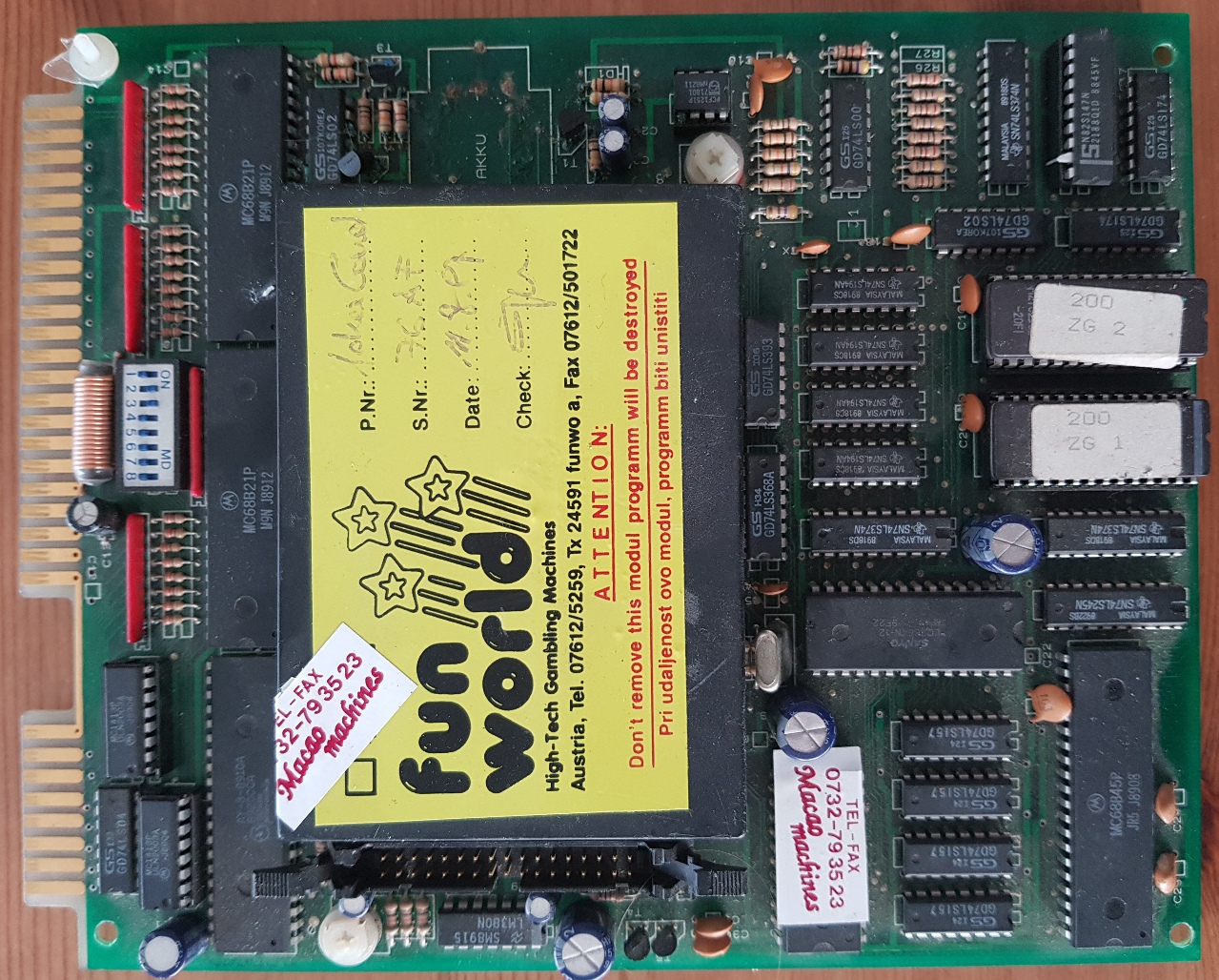 Thanks to Team Europe, we have a new Fun World board. This one is a derivative hardware with a special epoxy brick CPU.